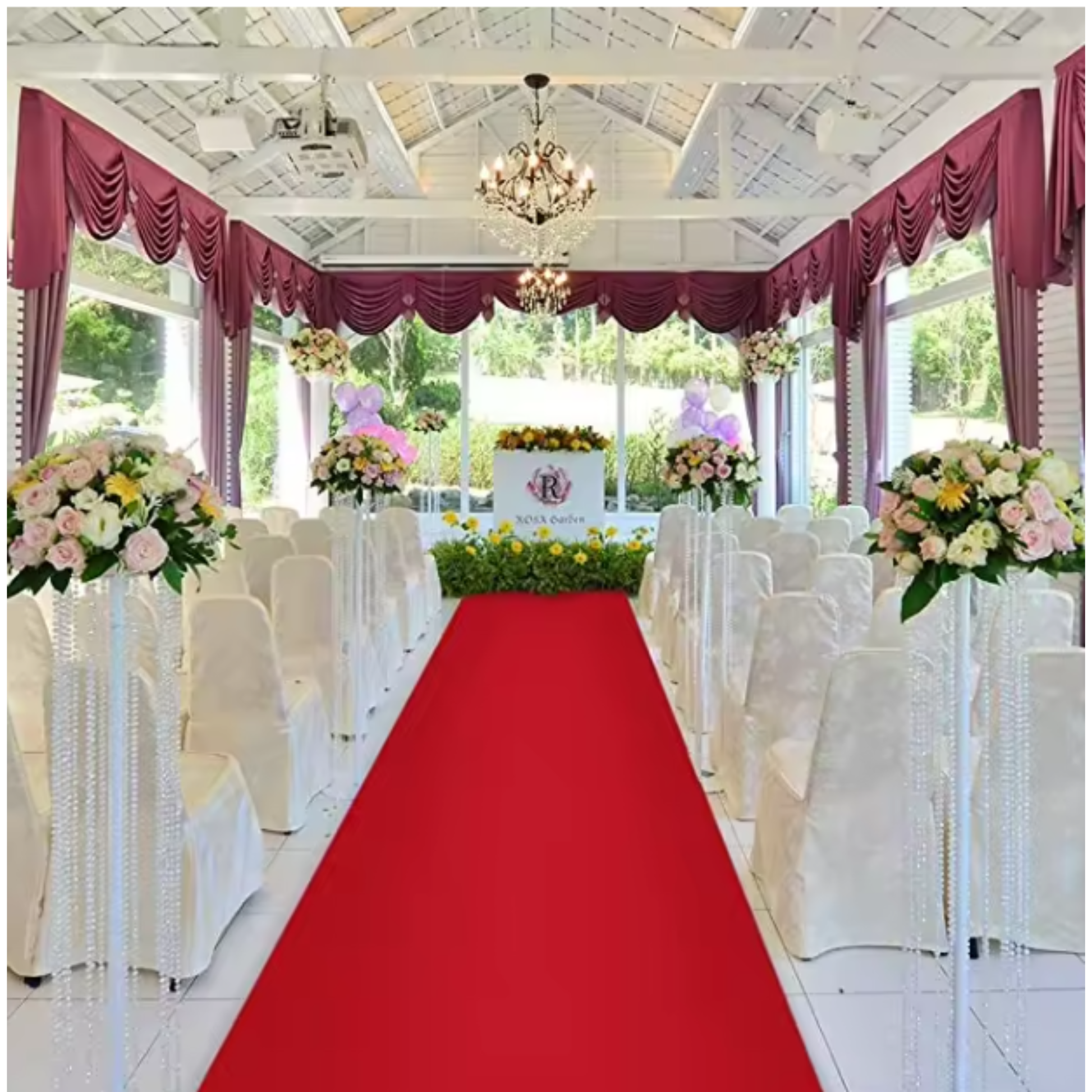 Make a bold and glamorous entrance with our Red Carpet Runner, measuring 3 ft x 25 ft. Perfect for creating a VIP experience, this carpet adds a touch of luxury and excitement to any event. Ideal for weddings, galas, award nights, proms, birthdays, photo ops, and corporate events, it provides a polished walkway for guests and special moments. Made from durable material suitable for indoor and outdoor use, this red carpet runner instantly elevates your event décor and creates an unforgettable first impression.